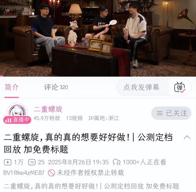 二重螺旋发布视频宣传结果标题带了个“加免费标题”估计是提醒词忘删了,正确标题本应该是“免费!二重螺旋真的想要好好做”就在网友吐槽神人运营的时候二重螺旋又发了个角色PV,“《二重螺旋》贝蕾妮卡PV 丨为何执剑,记得加上免费文案”,显然一个问题犯两次这官方是要么是故意整活,要么是第一个出错了灵机一动出现了神人点子,想起之前二重螺旋前瞻节目里复刻冯骥挨揍名场面什么的倒也不奇怪了,行了行了,知道你们想活了,求生欲已经溢出屏幕了~