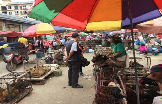 这张照片拍摄于2016年。当时已经有很多黄羽肉鸡进入了小凉山地区,而这位阿姨售卖的是当地土鸡品种。