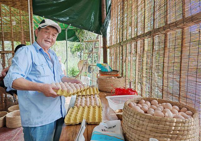 “我们农场的鸡全是散养,平时喂的是玉米和蔬菜叶,目前存栏5000多只。节假日我们邀请主播带货,逢年过节还会做福利活动。今天线多个鸡蛋。除了鸡、鸭、鹅,还有土鸡蛋供应。现在生活条件好了,很多游客喜欢来体验农村生活,自己抓鸡、捡鸡蛋,周末和节假日人特别多,非常热闹。”农场工作人员魏荣敏介绍。